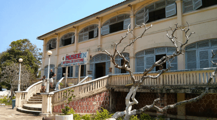Inauguré en 1981, le musée national du costume se trouve dans la zone “France” de Grand-Bassam, à l’intérieur de l’ancien Palais du Gouverneur qui fut autrefois la première capitale de la Côte d’Ivoire de 1893 à 1900. Situé à l’angle des boulevards Treich Laplène et Bonhoure, ce bâtiment bien conservé illustre à merveille l’architecture de prestige de l’époque. Construit avec des éléments préfabriqués et une structure en poutrelles métalliques, il se distingue par ses belles huisseries en bois.