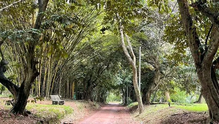 La visite se poursuit avec une pépinière où diverses espèces de plantes sont exposées, dont l’Ixora coccinea, très prisée des papillons, ainsi que des hibiscus, des bougainvilliers et le ravissant Alamanda. Un impressionnant alignement de palmiers borde la grande allée, tandis que des bosquets de bambous forment un magnifique tunnel de verdure. À la sortie du jardin, un espace dédié aux pique-niques avec une buvette attire de nombreux visiteurs, les familles et groupes religieux s’y rassemblent souvent pour ajouter une ambiance vivante de cet endroit.