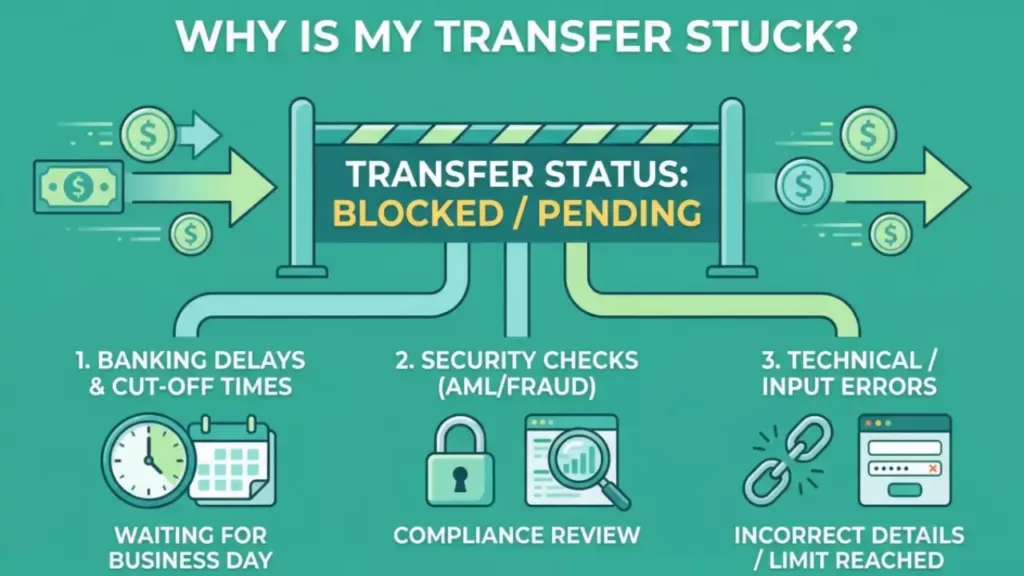 Si l’argent n’est pas arrivé, c’est généralement pour l’une de ces trois raisons principales : les délais bancaires, la sécurité ou une erreur de saisie.